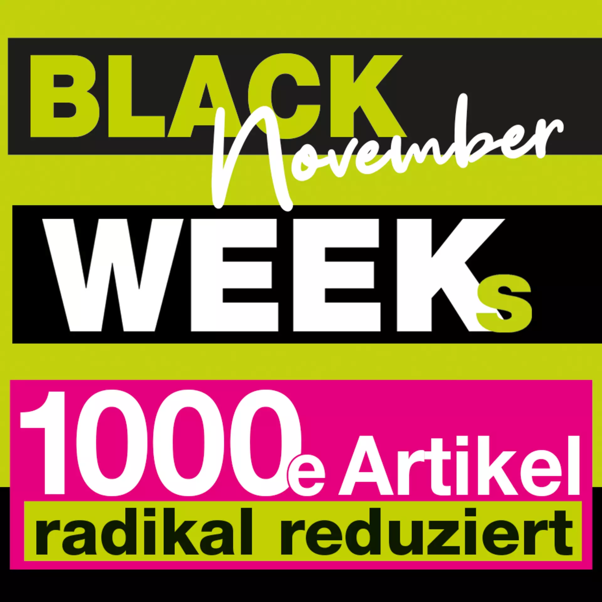 Bei unseren großen Black Week Angeboten erwarten Sie über 1000 Preiskracher, radikal reduziert und nur für kurze Zeit verfügbar.