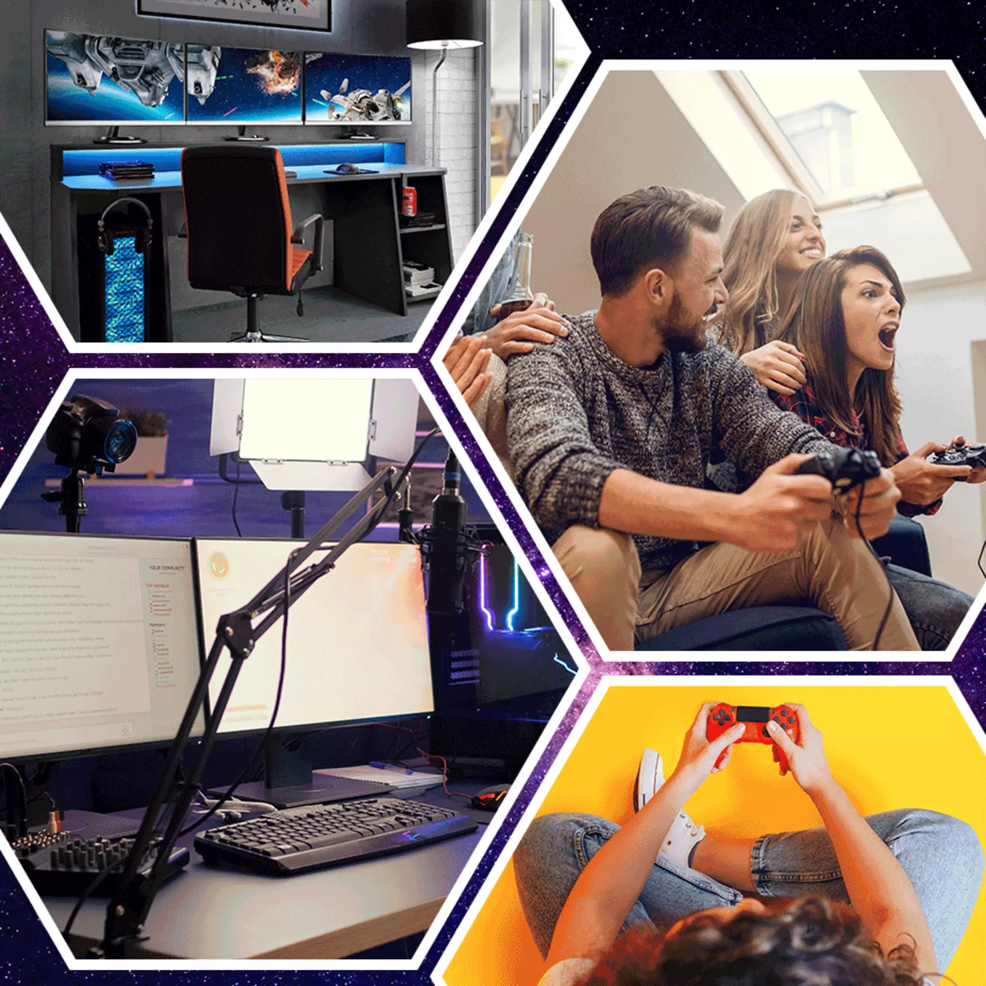 Bevor Sie jedoch mit der Anschaffung der Möbel beginnen, seien Sie sich im Klaren darüber, was später auch alles dort Platz finden muss. Als Konsolenspieler haben Sie meist nur eine Spielekonsole, einen Fernseher und vielleicht noch ein Headset. Als PC-Spieler kann die Ausstattung aber ganz schnell anwachsen auf einen verwirrenden Kabelsalat und mehrere Monitore. Als Streamer oder Streamerin ist Ihr Setup wahrscheinlich noch ein wenig umfangreich enthält noch ein Ringlicht, Kamera und Mikrofon bis hin zu mehreren PCs.