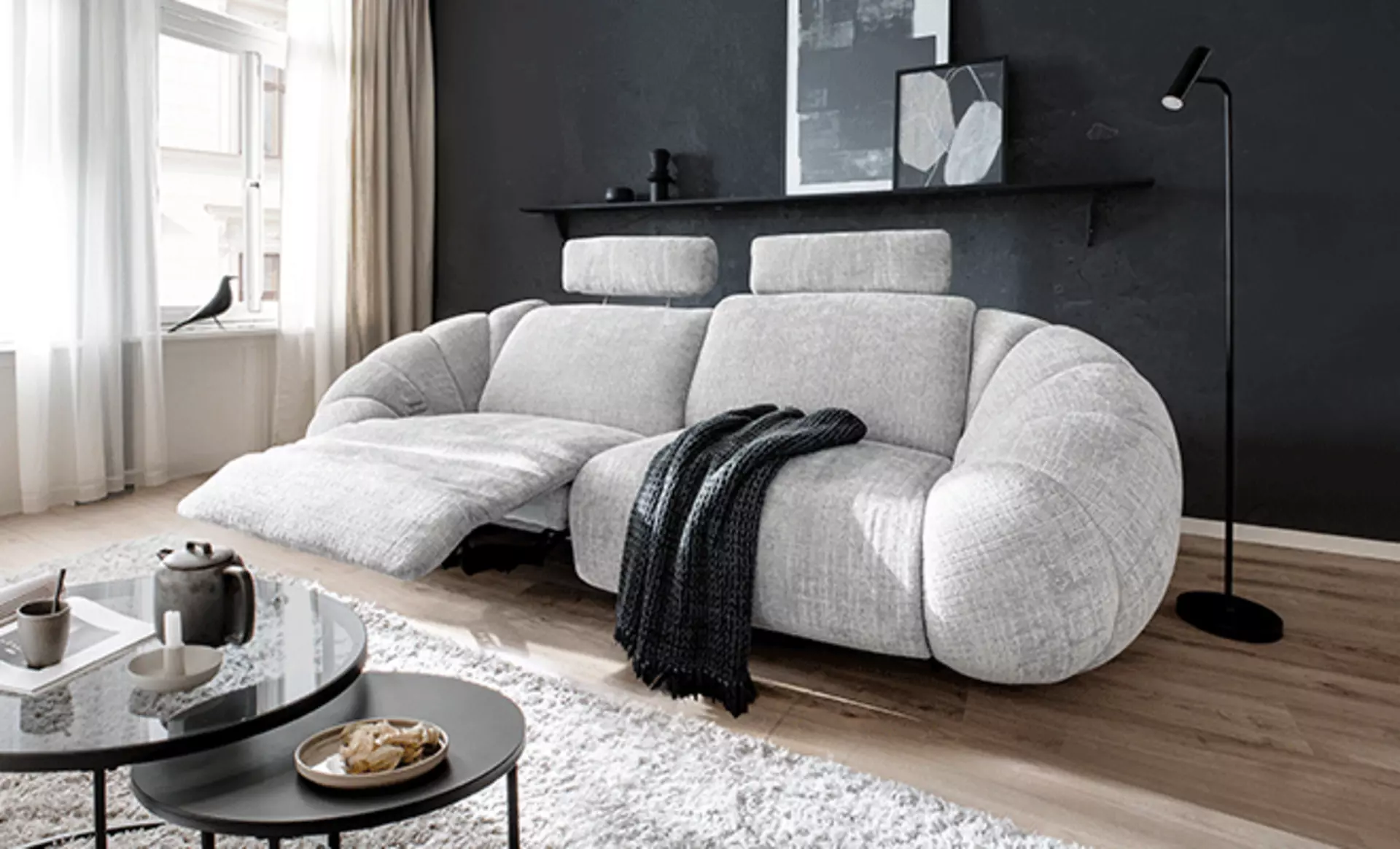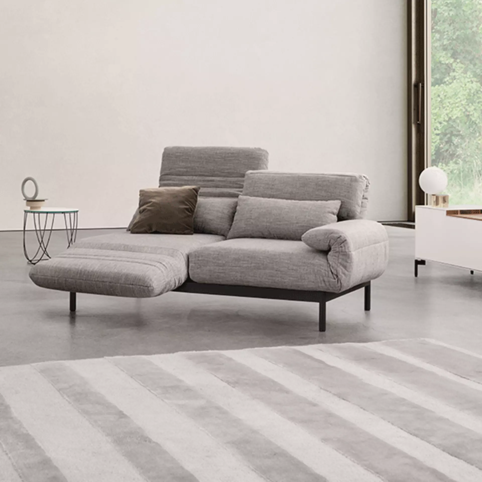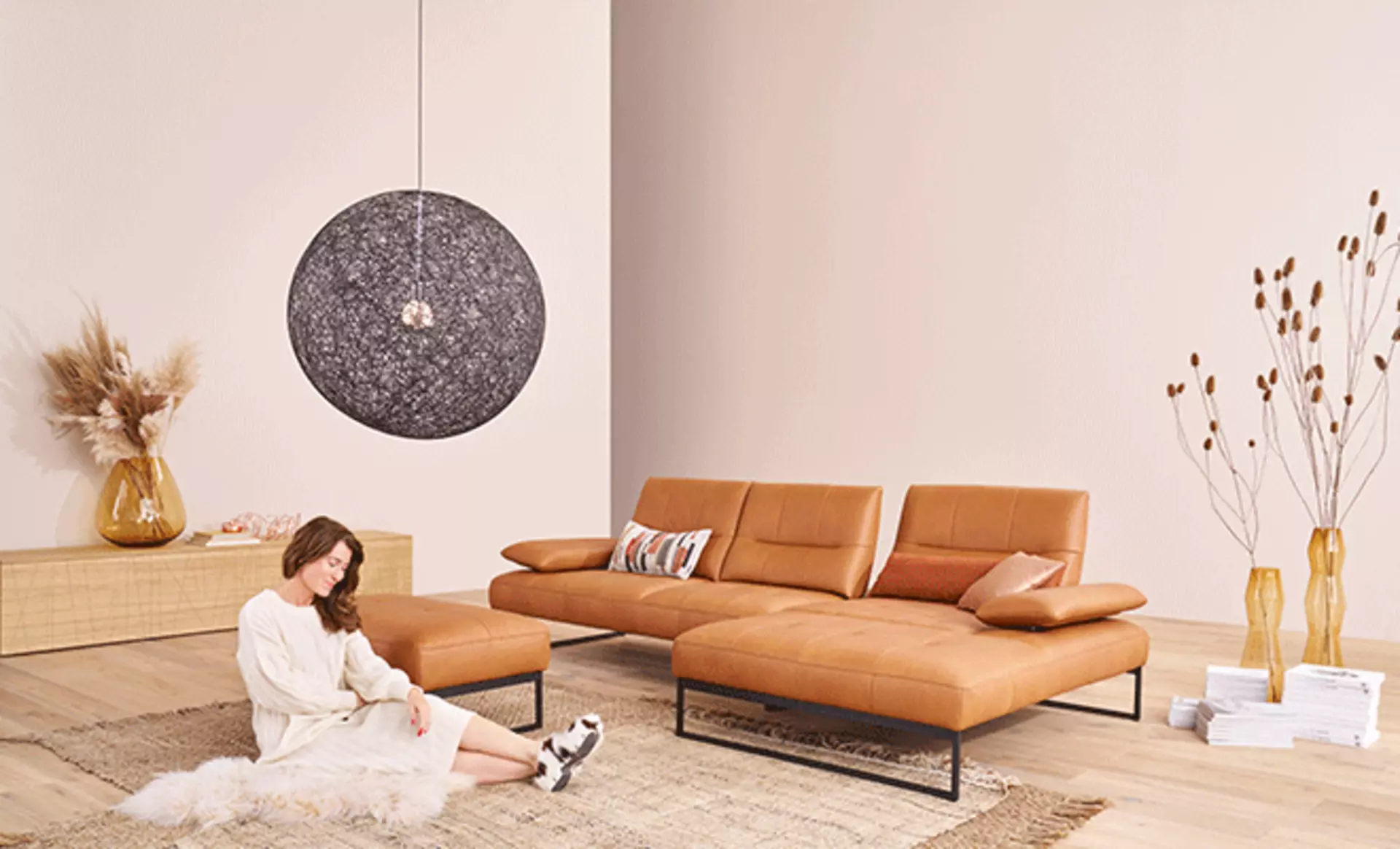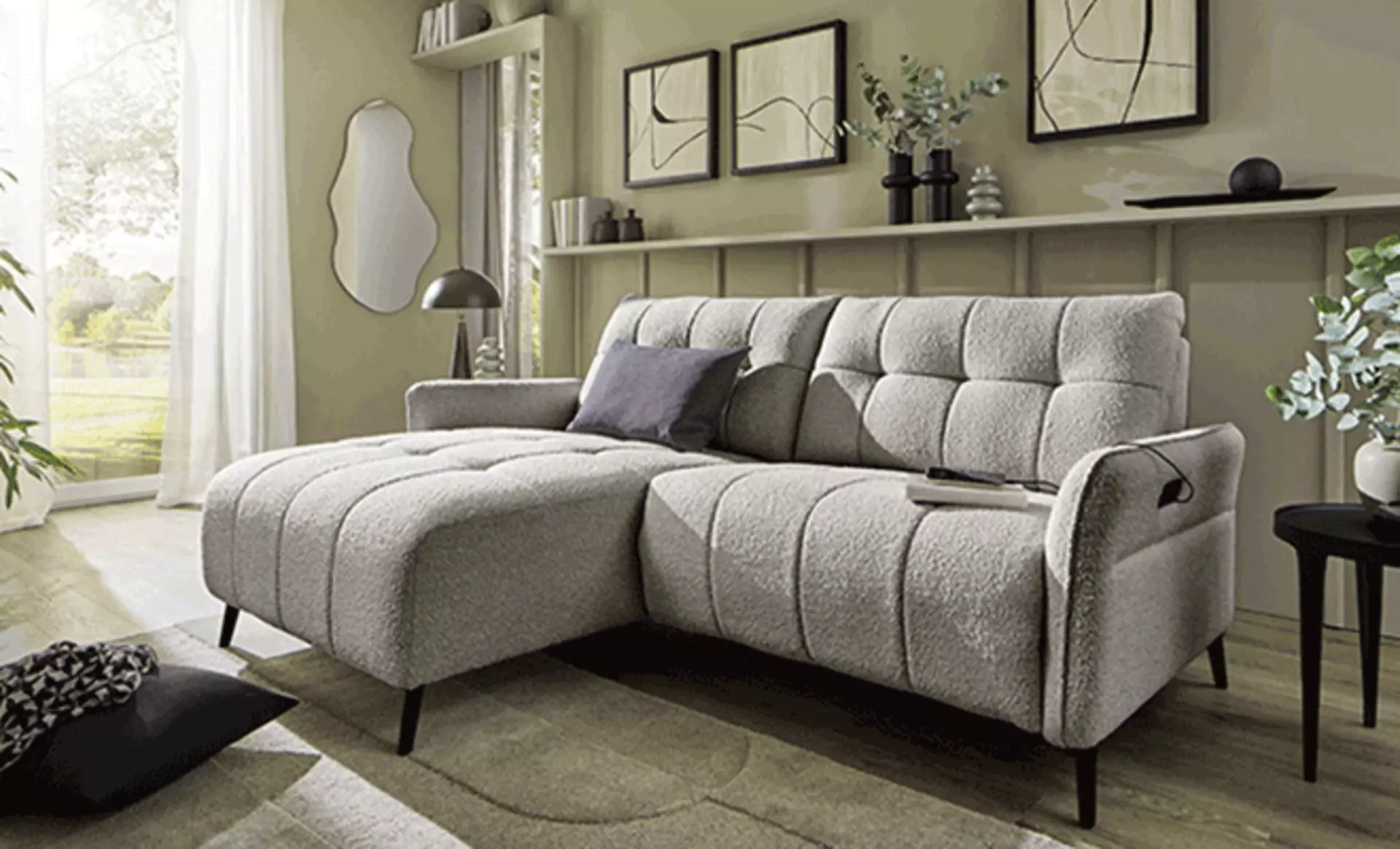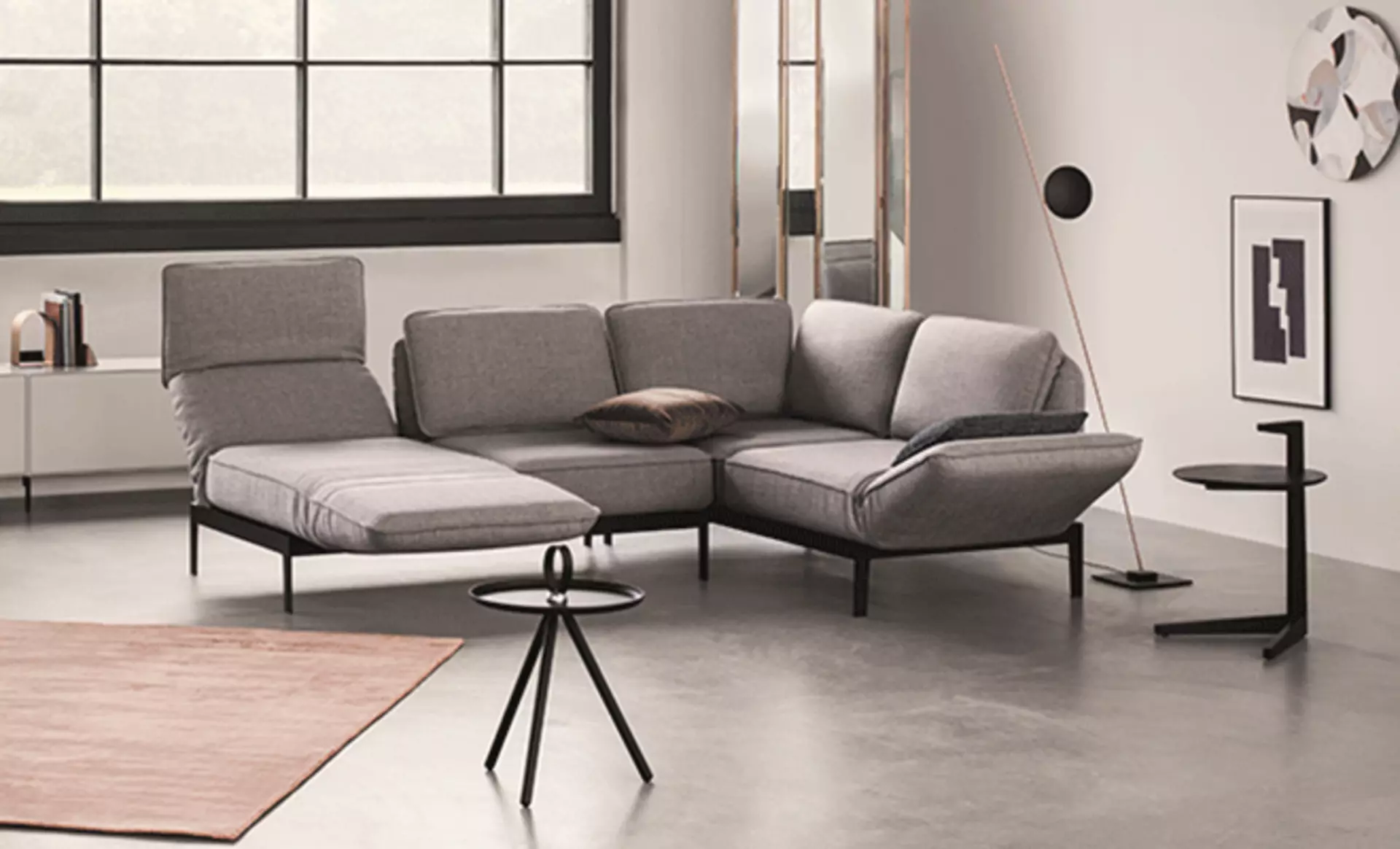 Heute eine gemütliche Ecke zum Entspannen, morgen eine offene Sitzlandschaft für Gäste: Mit wenigen Handgriffen kann das Sofa umgestellt werden.