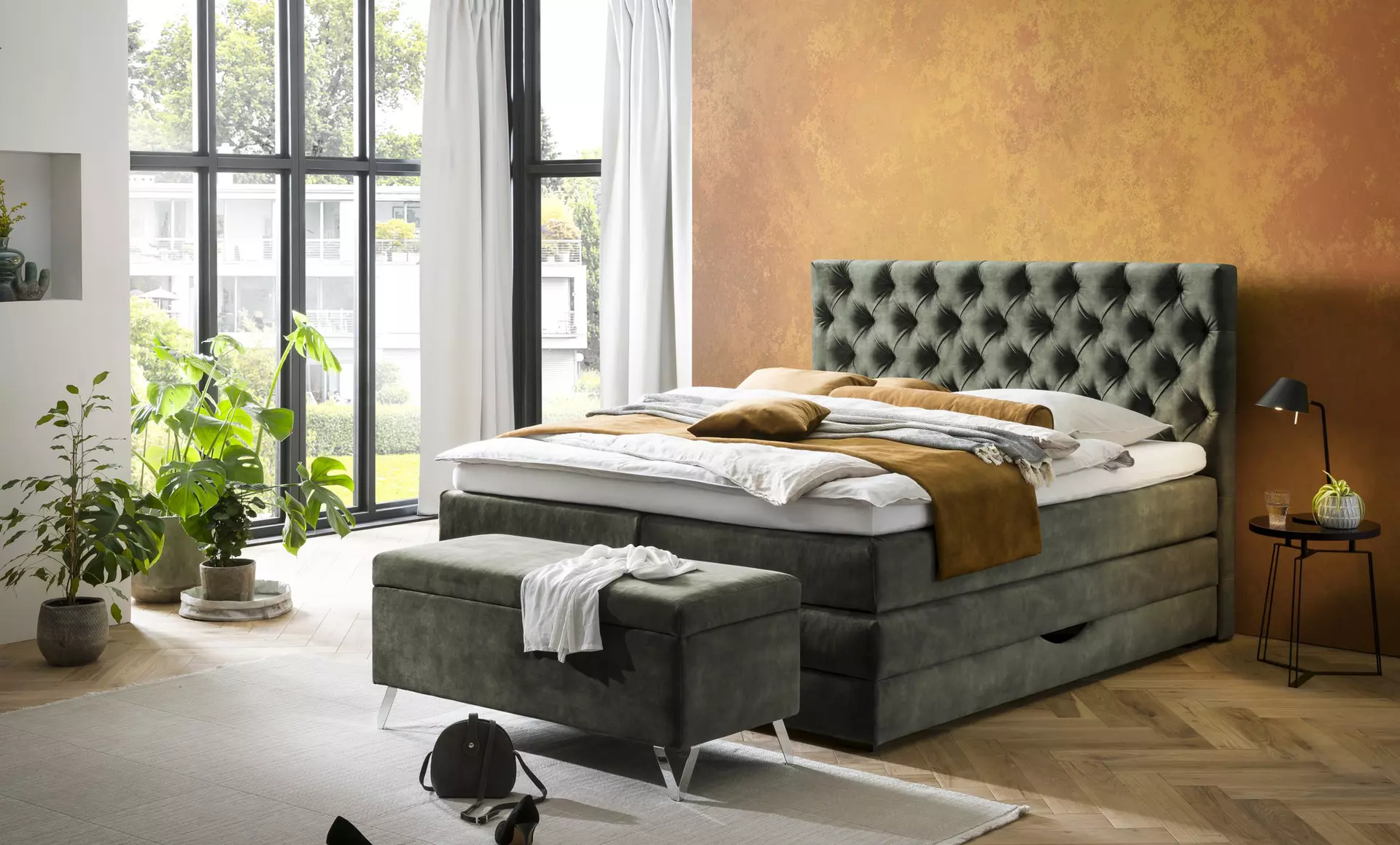 Am leichtesten lässt sich der Trend im Schlafzimmer durch entsprechend farbige Bettwäsche umsetzen. Plaids, Dekokissen und Vorhänge in den Farben Karamell, Zimt und Olivgrün helfen ebenfalls bei der Umsetzung. Richtig kuschelig wird es hingegen mit einem weichen Polsterbett in der Farbe Karamell oder Olivgrün. Die weiteren Trendfarben bilden dann die textilen Accessoires und runden den Look ab.