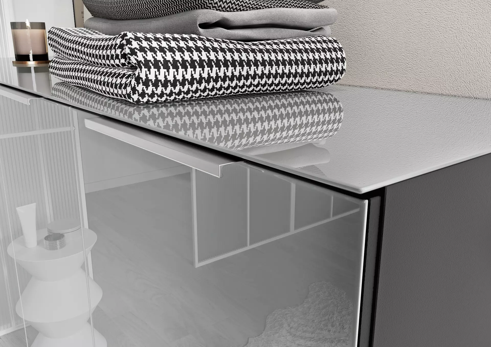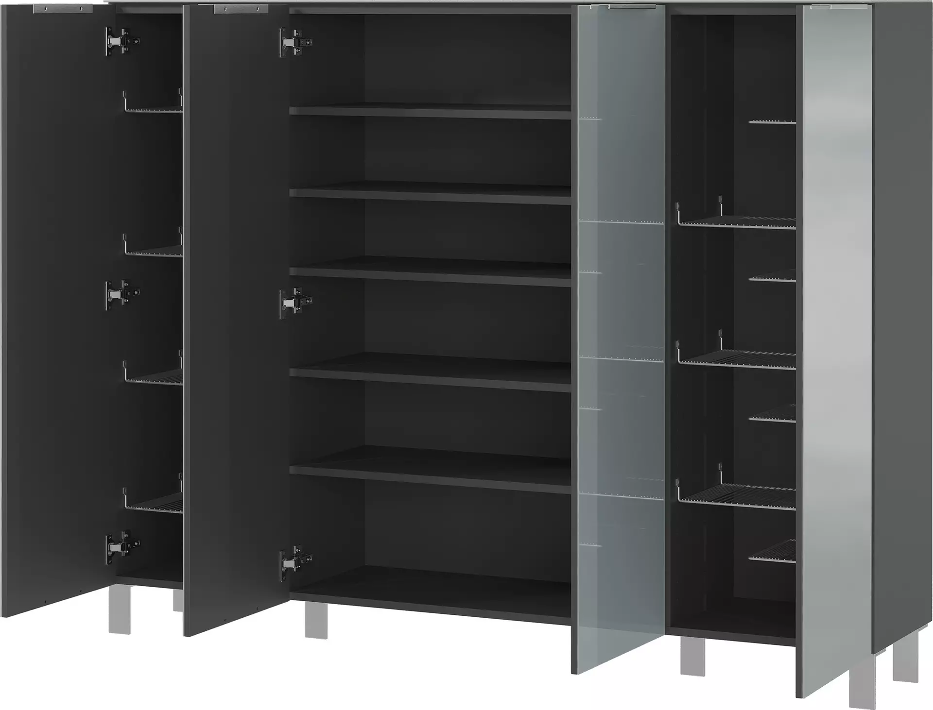 Der Schuhschrank mit seinen eleganten vier Türen bietet nicht nur ausreichend Stauraum, sondern fügt sich auch harmonisch in verschiedene Wohnstile ein. Die Kombination aus Holzwerkstoff und Glas sorgt für eine ansprechende Optik und macht dieses Möbelstück zu einem funktionalen Highlight in jedem Flur oder Eingangsbereich. Dank seiner durchdachten Konstruktion wird der Platz optimal genutzt, was besonders in kleineren Wohnungen von Vorteil ist. Der VITO SIRIANO stellt sicher, dass Ihre Schuhe stets ordentlich und griffbereit aufbewahrt werden können, während gleichzeitig der Raum aufgeräumt wirkt.