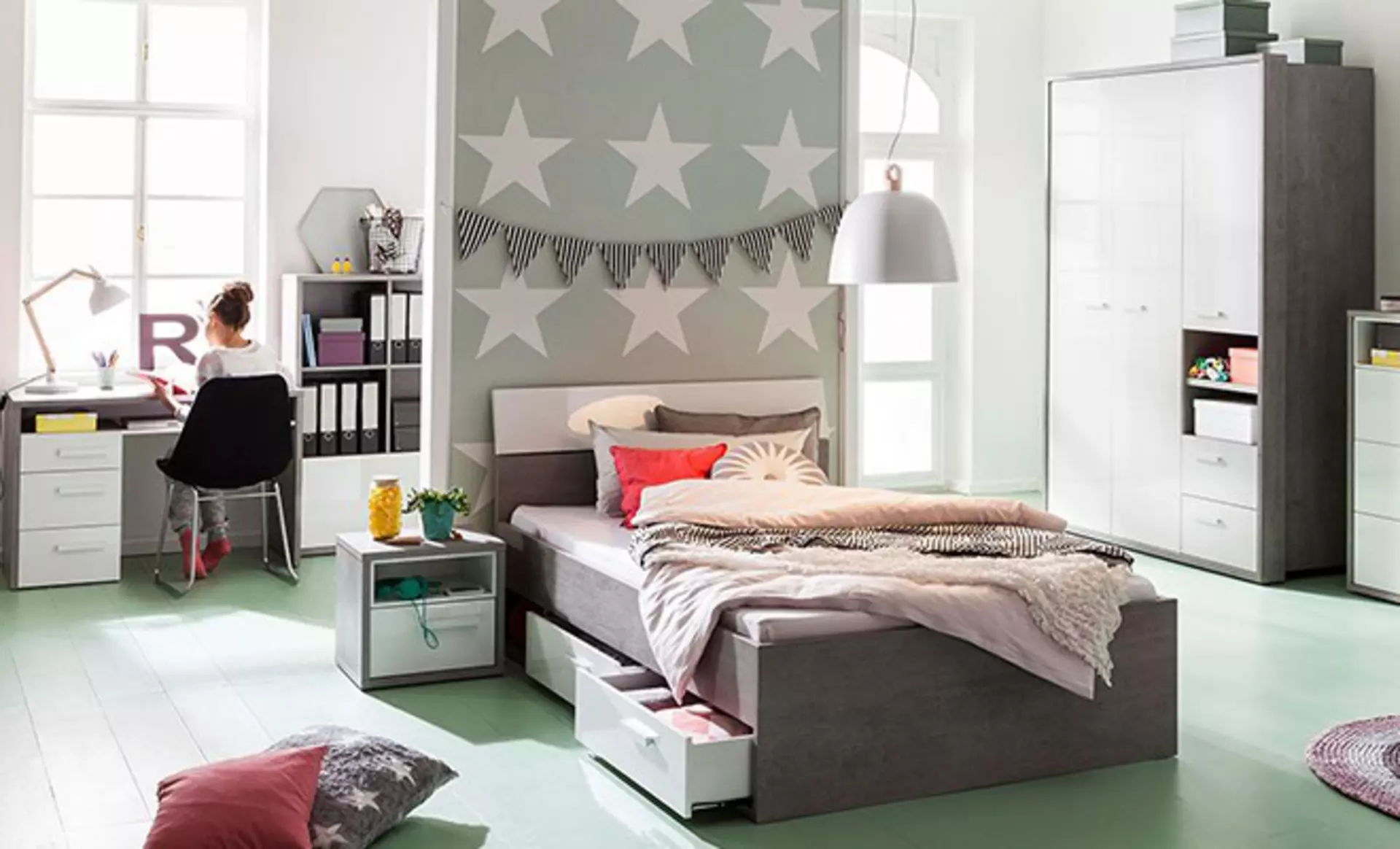 Besonders wichtig wird in dieser Phase die Gestaltung des Raumes. Farben, Bilder, Poster oder Textilien ermöglichen es Jugendlichen, ihr Zimmer ganz nach ihrem eigenen Geschmack einzurichten. Oft reichen schon kleine Veränderungen aus, um dem Raum eine völlig neue Wirkung zu geben.