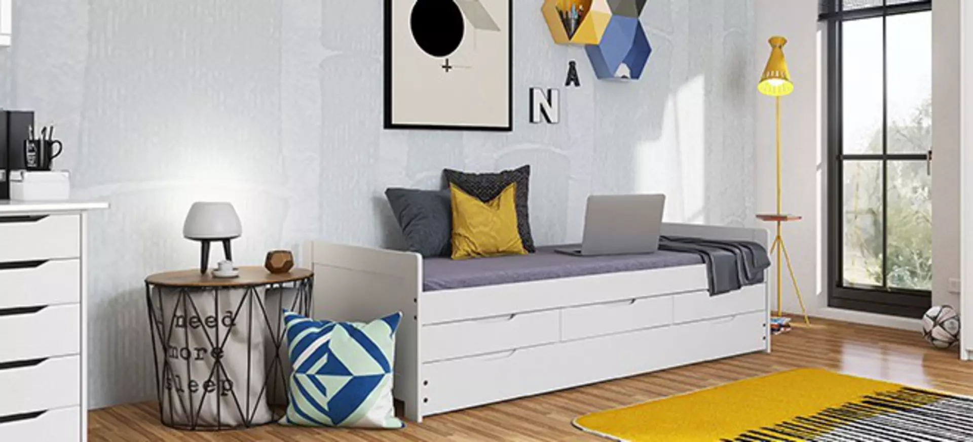 Auch das Bett kann in dieser Phase eine zusätzliche Funktion übernehmen. Hochbetten oder Betten mit integriertem Stauraum bieten zum Beispiel Platz für Schubladen, zusätzliche Ablagen oder sogar einen kleinen Arbeitsbereich darunter. Gerade in kleineren Zimmern lässt sich der vorhandene Raum so optimal nutzen.
