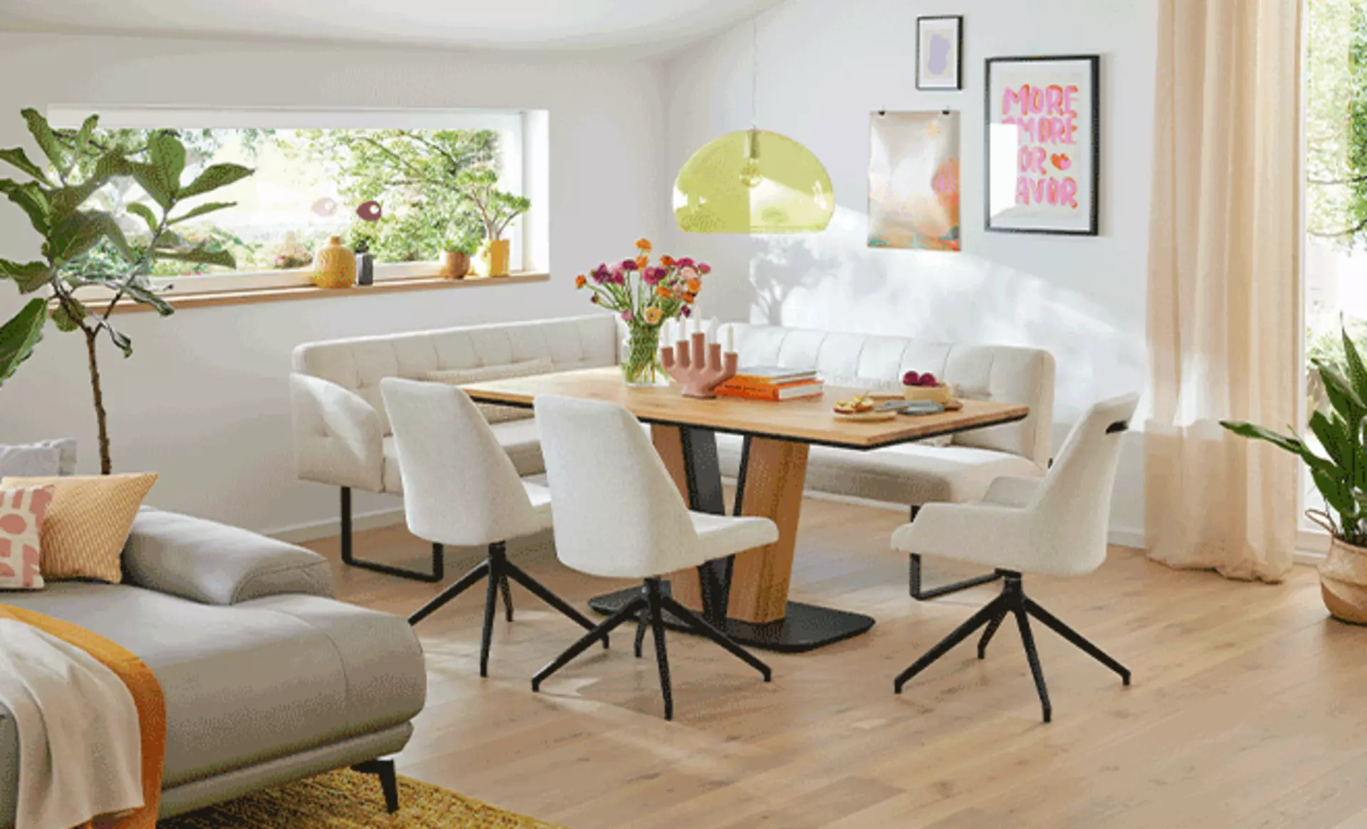 Unsere Einrichtungsexpert:innen unterstützen Sie dabei, die ideale Kombination für Ihren Essbereich zu finden. Gemeinsam berücksichtigen wir Raumgröße, Materialien, Farben und Ihren persönlichen Einrichtungsstil. So entsteht ein Esszimmer, das Design, Komfort und Funktionalität verbindet und zum natürlichen Mittelpunkt Ihres Zuhauses wird.