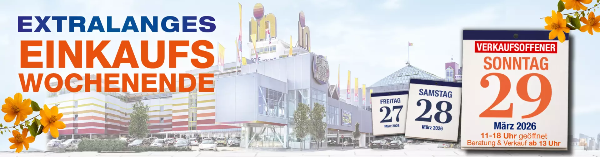 Am Sonntag, den 29. März 2026, öffnen wir von 11:00 bis 18:00 Uhr exklusiv unsere Türen für Sie! Nutzen Sie den verkaufsoffenen Sonntag bei Möbel Inhofer in Senden und tauchen Sie ein in unsere riesige Auswahl an Möbeln und Wohnaccessoires. Lassen Sie sich von den neuesten Einrichtungstrends inspirieren und entdecken Sie, wie Sie Ihr Zuhause verschönern können. Für kulinarische Pausen sorgen unsere Restaurants im 1. und 5. Stock. Unsere Fachberater stehen Ihnen ab 13:00 Uhr zur Verfügung.